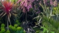 Sur un terrain tout plat de 4 500 m2 traversé par une allée centrale, ils ont créé pour rompre cette monotonie, plusieurs chambres aux ambiances très différentes jardin exotique, romantique, japonisant, contemporain, potager en carrés surélevés ou verger traversé d'un ruban ondulant de graminées... De formation artistique, la jardinière et son bricoleur de mari ont dessiné une série de tableaux vivants, où formes et couleurs se juxtaposent avec harmonie.